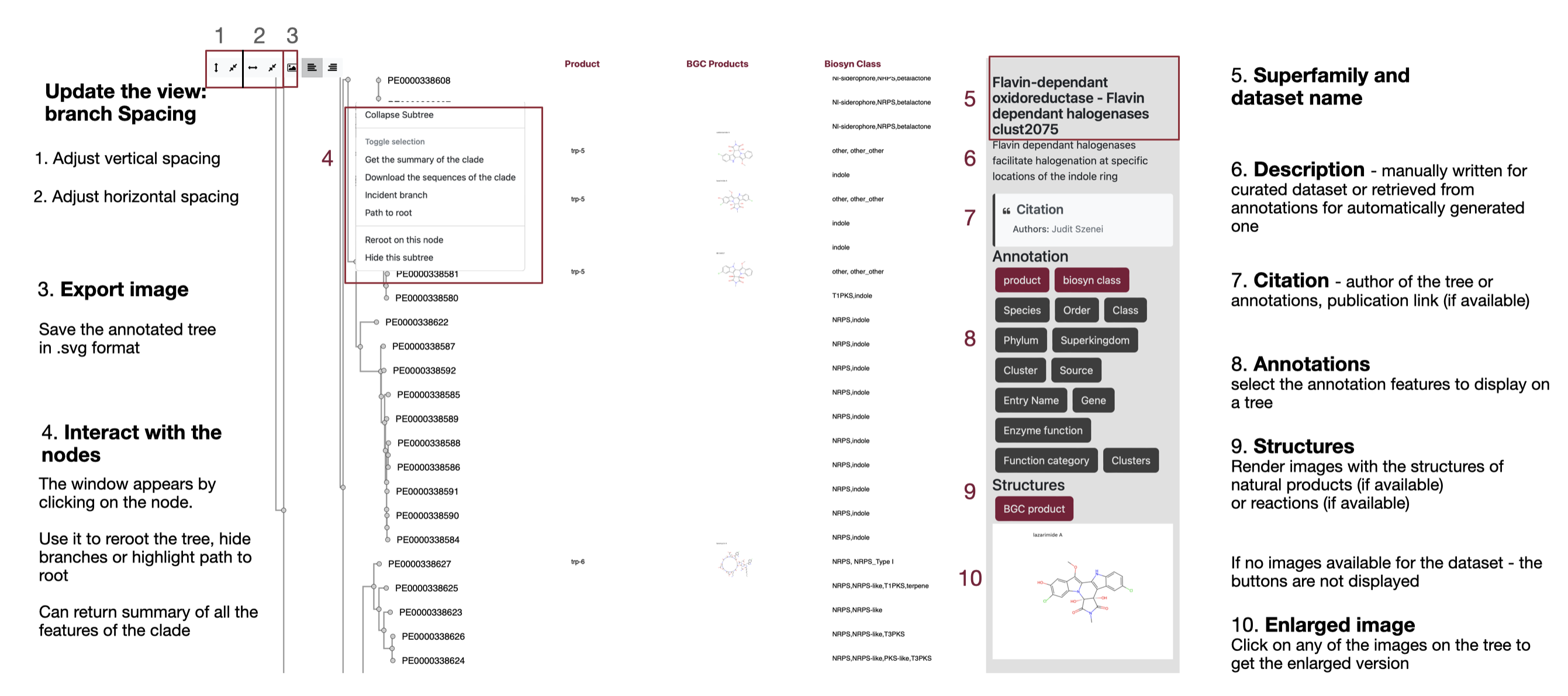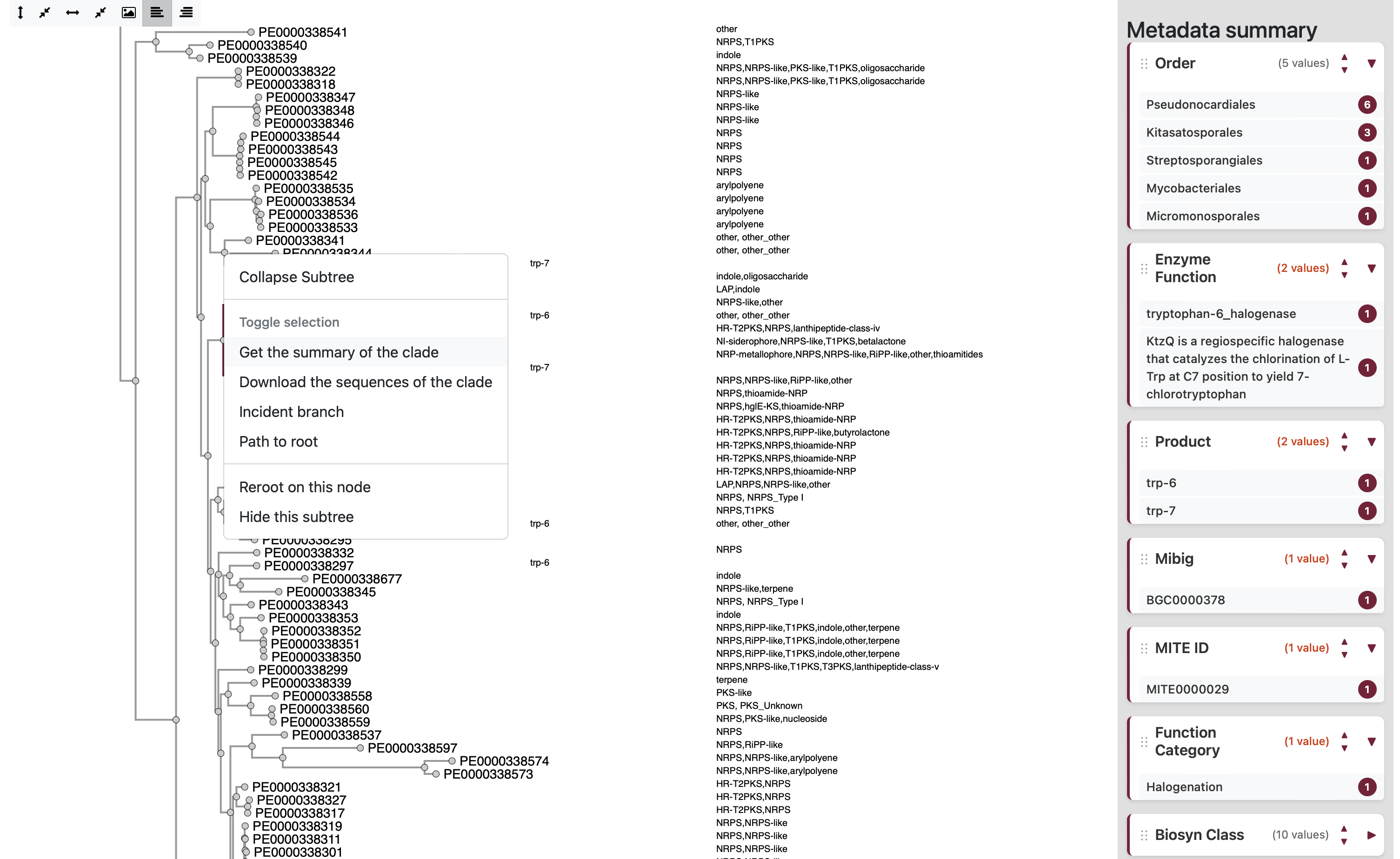 Natural products are a major source of novel drugs, and with the rise of antibiotic resistance, there is an urgent need to discover new compounds. Genome mining enables the rapid identification of biosynthetic gene clusters (BGCs) responsible for natural product biosynthesis. Predicting the structures of the synthesized compounds is key to guiding their targeted discovery, but this requires detailed knowledge of the enzymatic reactions at each step of the biosynthetic pathway. While the core scaffold of many natural products can often be predicted from the initial biosynthetic steps, later tailoring modifications remain difficult to model due to the limited characterization of the enzymes involved. Reliable reaction prediction requires first gathering functional annotations and performing evolutionary analysis of these enzymes—only then can accurate computational predictions be made. In the absence of automated tools, this process becomes time-consuming. Although phylogenetic trees with functional annotations are occasionally published, reusing them directly is labor-intensive and technically challenging.